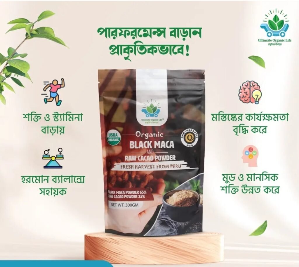 UOL Organic Black maca & Cacao Powder Blend রয়েছে মাল্টিভিটামিন এর ৪৯টি উপাদান আছে জিনসিং, আলকুশি, সাফেদ মুসলি, পানিফল, শিমুল মূল, শতমূল, তালমাখনা, মাশরুম, আখরোট, আফ্রিকান খুসিলা, কস্তুরী এর মতো মহামূল্যবান বহু উপাদান